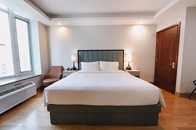 Please be advised, our hotel does not have parking. Access to the hotel via sidewalk curb.